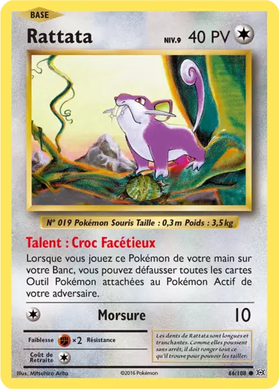 Rattata évolue en Rattatac à partir du niveau 20, qui est son évolution plus grande, plus agressive et plus puissante. Cette évolution garde le même type Normal et conserve la rapidité et l’agilité de Rattata tout en gagnant en robustesse et en force de morsure. Il existe aussi une forme régionale appelée Rattata d’Alola, qui est de type Normal/Ténèbres, plus noire que sa forme classique et qui vit principalement en milieu urbain, adoptant un comportement nocturne pour échapper à ses prédateurs. Le Rattata d’Alola évolue en Rattatac d’Alola pendant la nuit, ajoutant une touche stratégique à son évolution dans les jeux et le TCG.